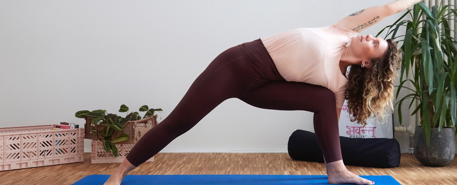 Bleibe, wenn nicht anders angegeben, für fünf Atemzüge pro Seite in der Asana. Etabliere einen tiefen und geführten Ujjayi-Atem. Insgesamt brauchst du für die Sequenz dann ca. 30 Minuten. Du kannst auch gerne länger in den sitzenden und liegenden Asanas bleiben.
